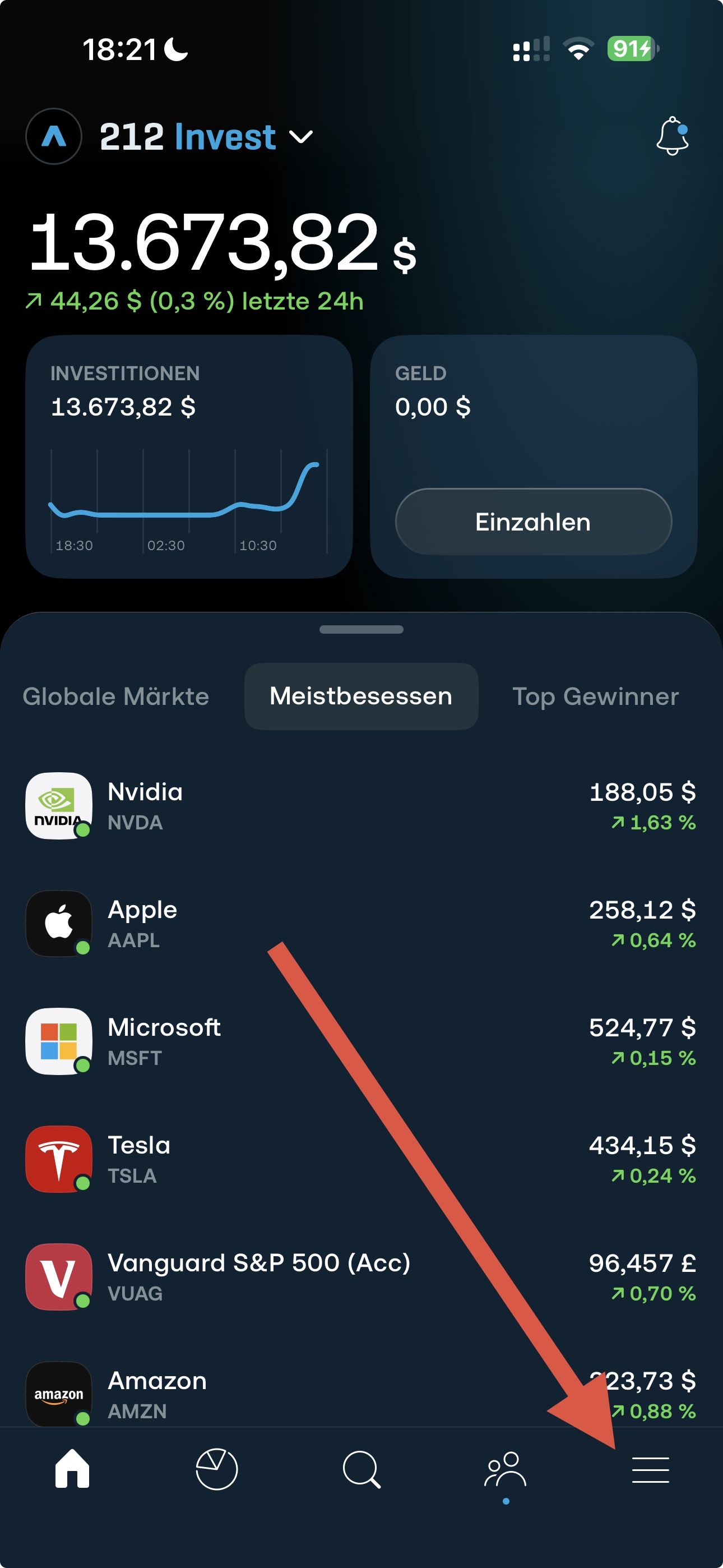 Tätige anschließend deine erste Einzahlung von mindestens €1. Trading 212 akzeptiert verschiedene Zahlungsmethoden wie Banküberweisung, Kreditkarte oder Sofortüberweisung. Wir empfehlen Sofortüberweisung für die schnellste Abwicklung.