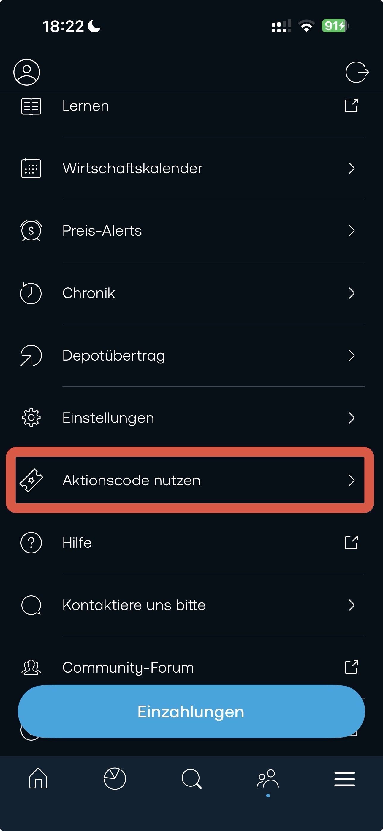 Stelle sicher, dass du mindestens €1 auf dein Konto einzahlst (falls noch nicht geschehen). Der Code wird erst nach der Einzahlung aktiviert. Deine Gratis-Aktie wird innerhalb der nächsten drei Werktage gutgeschrieben.