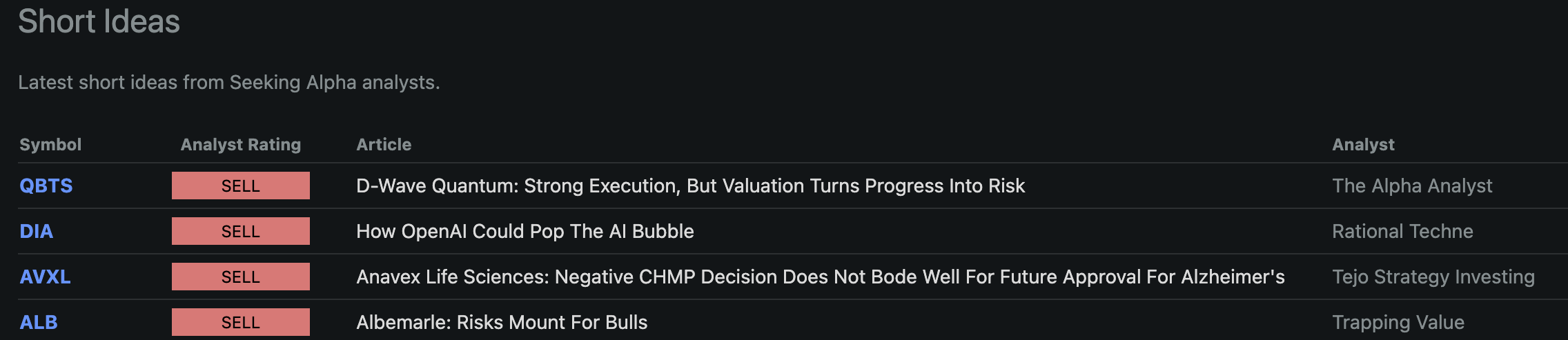 Pro includes vetted short ideas, something not available in Premium or Alpha Picks. These aren't simply "sell" ratings but detailed bearish theses with supporting analysis from experienced short sellers.